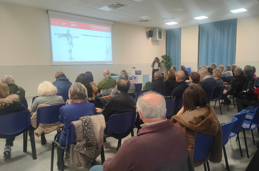 Durante l’incontro la dottoressa ha spiegato il perché del declino dei i muscoli scheletrici durante l’invecchiamento e come una corretta alimentazione possa aiutarci a mantenere i muscoli in forza, rendendosi disponibile ad accogliere le domande del pubblico.